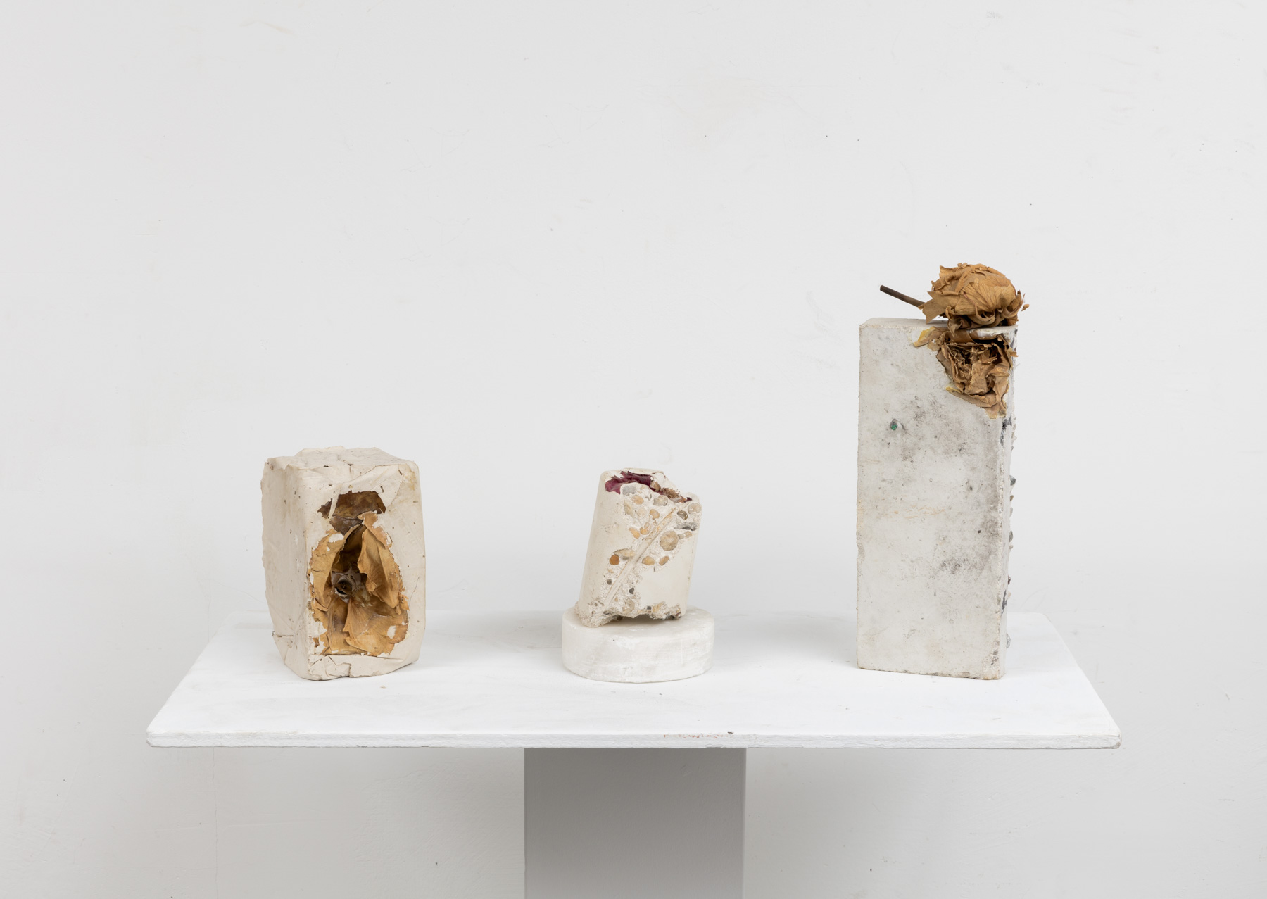 White concrete, White roses, Steel, Marble